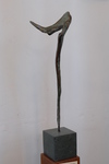 2015Een paarse serpentijn op een wit marmeren sokkel. Het beeld is schuin gepositioneerd op de sokkel waardoor het opstijgende karakter van dit beeld nog meer tot uiting komt.