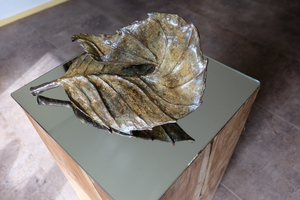2019een prachtig gepatineerd bronzen beeld van een omgekruld, bijna verweerd, herfstblad. Een beeld van vergankelijkheid. Hoe mooi kan een "afstervingsproces" zijn!